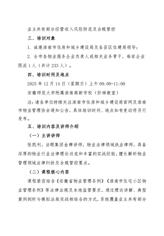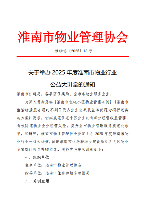 关于举办 2025 年度淮南市物业行业公益大讲堂的通知