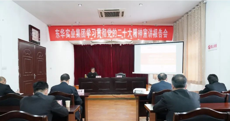 最后,东华集团公司党委书记、董事长金克绪就宣讲报告会内容的传达和贯彻,提出三点要求。一是要在思想上提高认识。二是要在宣传上精心策划。三是要在学习贯彻落实上狠下功夫。要通过上下共同努力,做到党的二十大精神学习培训全覆盖,在全公司形成了原原本本学、持续深入学、联系实际学的浓厚氛围,确保党的二十大精神在东华集团落到实处,见到实效。