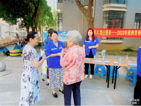 淮南市南都物业--中都华府二期小区是一个十几年的老小区了,有1580余户,因为管道老旧,时不时会发生供水问题。为了让广大业主能了解本小区的供水问题,号召业主节约用水,2023年6月10日淮南市南都物业邀请市首创水务公司,在小区20号楼西侧广场开展用水科普宣传活动。水务公司员工和物业工作人员给过往业主发放宣传彩页,对业主提出的问题进行现场解答,现场解答不清楚的,中都华府二期物业办安排水工师傅去业主家现场勘查、根据实际情况做现场解答。炎炎夏日,广场上的用水宣传犹如一股清泉,让业主们感受到丝丝凉意。