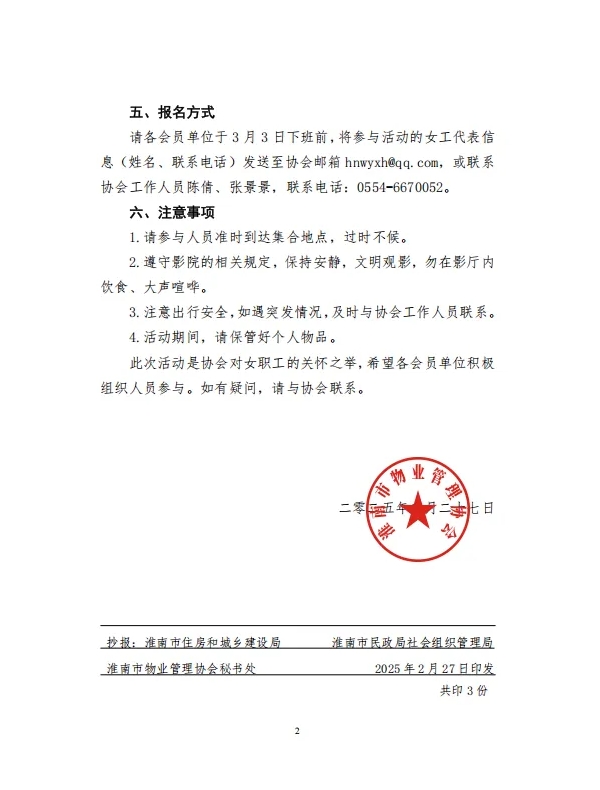 淮物协2025(06)号文:关于“三八”妇女节组织会员单位开展观影活动的通知