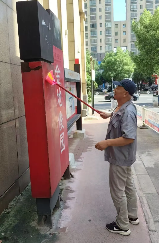 工程师傅还利用自己的业余爱好,将小区大门标牌粉刷一新,重新漆上“金地俊园”的大字,将整个标牌打扫维护干净,很多业主纷纷点赞,说像刚搬来时候的一样。