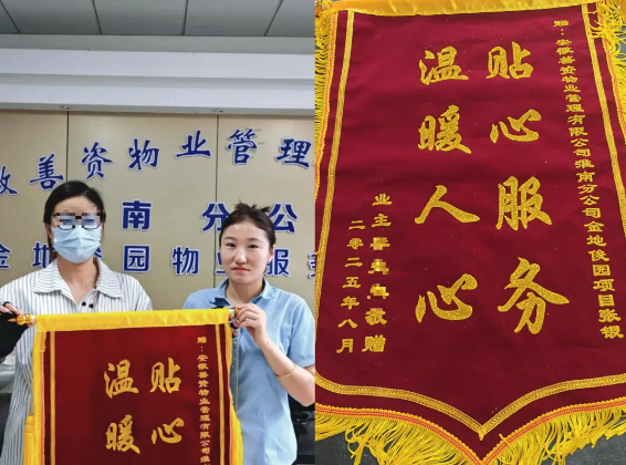 整改月期间,一位业主家有一对老人放暑假过来住。叔叔是一位老年痴呆症患者,有天中午阿姨在屋里看电视,这个叔叔自己开门跑出来了,阿姨着急来跟物业反馈,物业项目经理张银立刻安排监控室对接,秩序部在地库巡查,确定叔叔未离开楼栋,张经理带着客服在东单元一层一层找,终于在15层找到了走失叔叔。业主家人非常感谢,送来了锦旗以示感激。