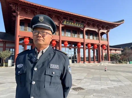 在寿县游客集散中心川流不息的人群中,总有一个身影格外醒目——市物业管理协会会长单位东华实业集团寿县游客集散中心服务项目保安队长余黎。他身着笔挺制服,或是在园区内细致巡检,或是在门口有序疏导车辆,专注的眼神与坚定的步伐,成为游客心中安心的象征。如今,这位深耕岗位的老员工又多了一个亲切的身份——抖音号“智游寿州古城”里圈粉无数的网红“老余”,用质朴真诚的方式向全网推介家乡之美。