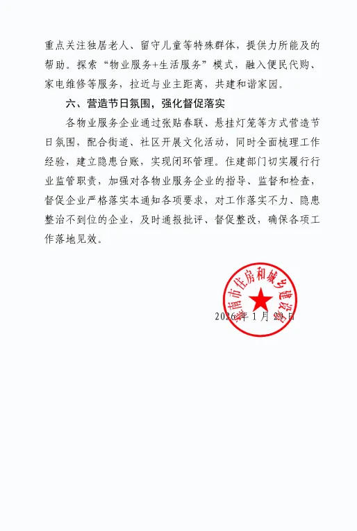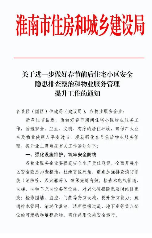 转发:关于进一步做好春节前后住宅小区安全隐患排查整治和物业服务管理提升工作的通知