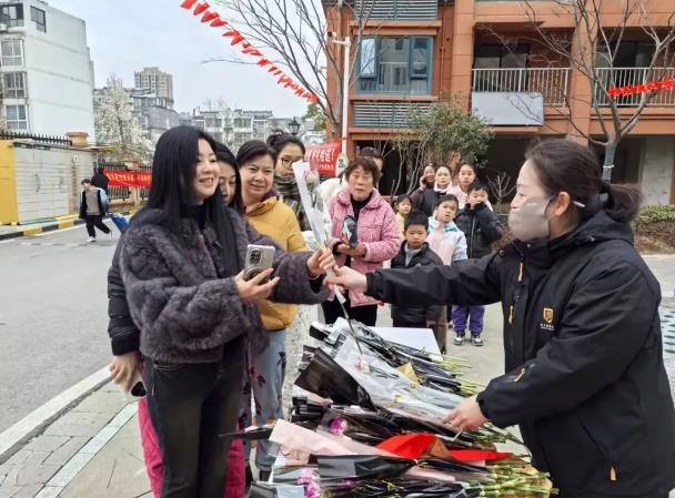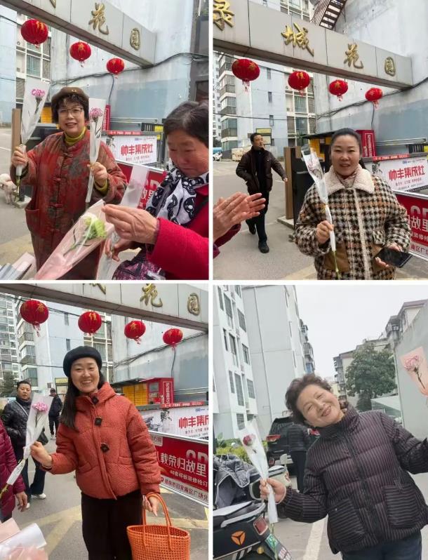 “祝您节日快乐!愿您永远美丽!”伴随着一声声真挚的问候,一支支包装精美的鲜花被递到了业主们的手中。收到花的“女神们”,脸上无不绽放出惊喜与感动的笑容。无论是步履匆匆的上班族,还是悠闲晨练的阿姨,亦或是带着孩子的年轻妈妈,都在这一刻停下了脚步,感受着这份不期而遇的温暖。