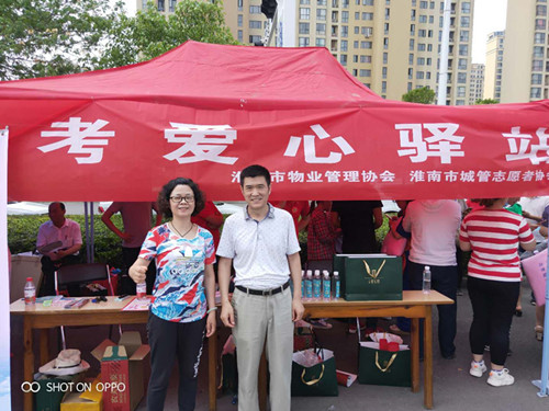 6月7日、8日,淮南市物业管理协会、市城管志愿者协会联合开展了“高考爱心驿站”志愿者服务活动。在我市一中、二中、四中及龙湖中学考点,组织部分物业服务企业在考场周边合适的位置,搭建“高考爱心驿站”服务台,为考生提供饮用水、应急药品和文具等物品,为侯考考生及家长提供休息、乘凉场所等爱心志愿服务。